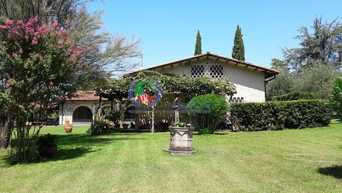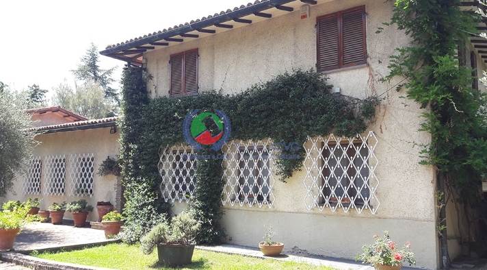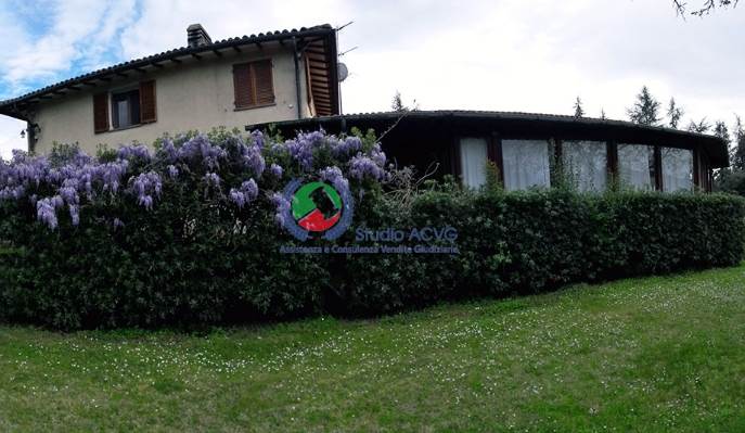 IN ASTA: Villa unifamiliare elevata su due piani fuori terra e composta da ingresso, studio, ampio salone comunicante con grande veranda e terrazzo coperto, pranzo, cucina, ripostiglio, quattro camere, due bagni, due disimpegni notte, due porticati al piano terra. Disimpegno notte, bagno e due camere di cui una con terrazza e soffitta praticabile al piano primo. Cantina, lavanderia, disimpegno, due centrali termiche, due locali di sgombero, ampio ripostiglio e garage doppio con rampa coperta al piano seminterrato oltre a tettoia destinata a legnaia posta sul lato nord. Il tutto all'interno di un ampio giardino con due tettoie per posti auto.