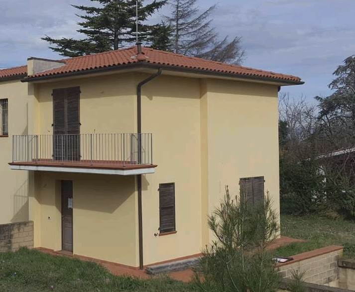 Villa bifamiliare, elevata su due piani fuori terra oltre ad un piano interrato, composta al piano terra da ingresso, ampio locale cucina/soggiorno e bagno, al piano primo da disimpegno, ripostiglio, tre camere (di cui una matrimoniale) ed un bagno, oltre a due balconi aventi accesso dalle due camere singole. Oltre ad un giardino di r30 mq ed un ampio locale ad uso garage di 66 mq.