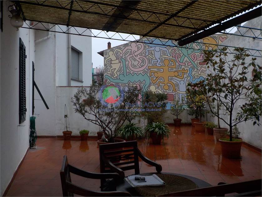 Appartamento disposto ai piani terreno e primo oltre ad una soffitta nel sottotetto e un vano cantina al piano interrato, composto al piano terra da ingresso-vano scale, tre ripostigli di cui uno con accesso alla scala che conduce alla cantina posta al piano interrato e un resede scoperto; al piano primo da ingresso disimpegno, cucina, cinque vani utili, due ripostigli, bagno e w.c., oltre a un balcone prospiciente la via D'Azeglio e un'ampia terrazza con vista sul murale "Tuttomondo" di Keith Haring; al piano sottotetto da un ampio vano soffitta. I piani sono collegati da una scala interna.
