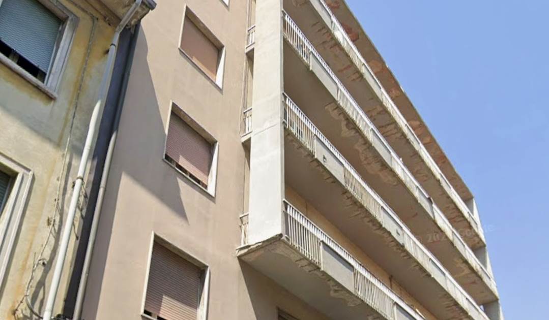 Appartamento situato al piano secondo (terzo fuori terra) di un più ampio fabbricato condominiale con accesso tramite loggiato, ingresso e vano scala comuni, e più precisamente dal portoncino posto a sinistra perchi provenga dalla scala sul pianerottolo del piano indicato. L’unità immobiliare è composta da ingresso, tinello con cucina, soggiorno, doppio disimpegno, due camere, bagno, ripostiglio, un terrazzo che delimita il lato sud-est dell’appartamento con accesso dal soggiorno e da una delle camere, un secondo terrazzo con accesso dalla seconda camera e una veranda con accesso dal tinello.