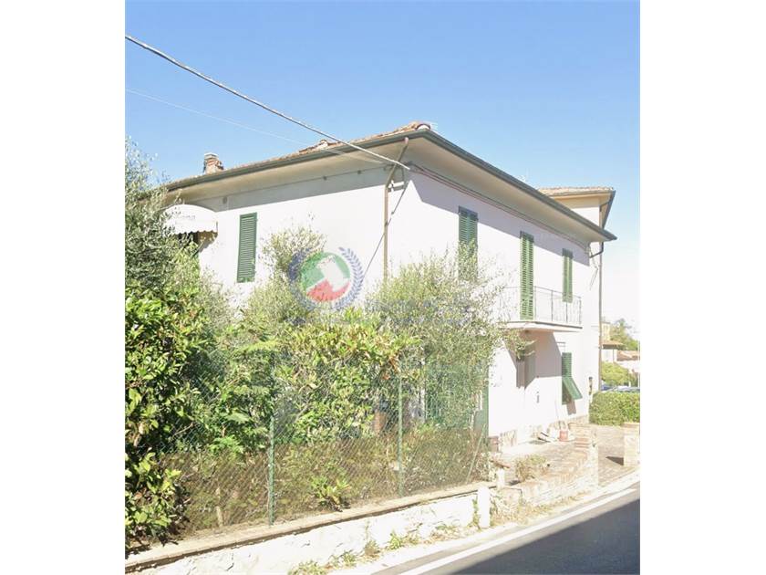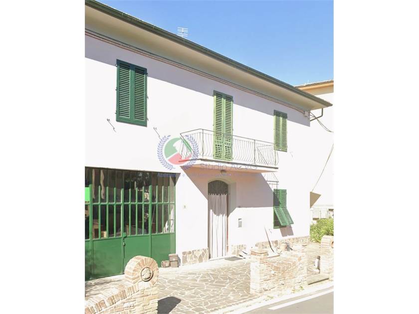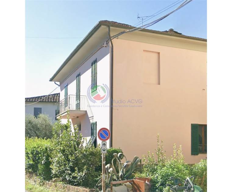 Appartamento con ingresso al piano terra tramite resede a comune recintato. Dal portoncino si accede al vano scale a comune e alla scala che porta al piano primo. All'interno dell'appartamento un lungo corridoio lo percorre longitudinalmente e su questo si affacciano le porte di tutte le stanze che lo compongono: una camera matrimoniale con finestra che dà sulla facciata principale, un bagno con vasca, la cucina con ingresso sul terrazzo, un'altra camera da letto con finestra sul terrazzo e la sala in fondo al corridoio, con finestra sullo stesso terrazzo. Il ripostiglio, raggiungibile dall'ingresso comune, è formato da due locali di cui uno al piano terra e uno al piano ammezzato, è raggiungibile mediante piccola scala esclusiva, l'altezza è di m 1,74 ed è adibito a lavanderia. Un altro ripostiglio si trova al piano terra, è raggiungibile dal giardino laterale, a comune. In detto ripostiglio si trova un forno a legna e la caldaia dell'impianto di riscaldamento.