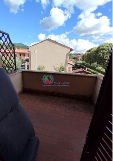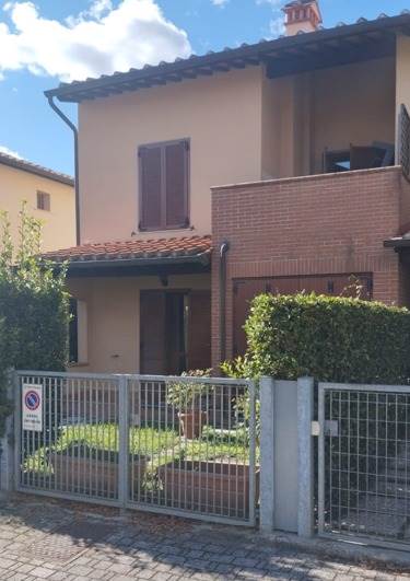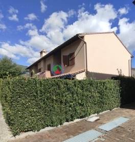 Villa di testata lato est disposta su due livelli con resede esclusivo su tre lati, portico sia su lato principale di accesso che sul retro, composta al piano terra da ingresso con ampio soggiorno, pranzo, cucina abitabile, bagno con antibagno, oltre scala di collegamento con il piano primo, suddiviso in camera matrimoniale, camera singola, bagno e studio con annesso ampio terrazzo parzialmente coperto. completa la proprietà un'autorimessa.
